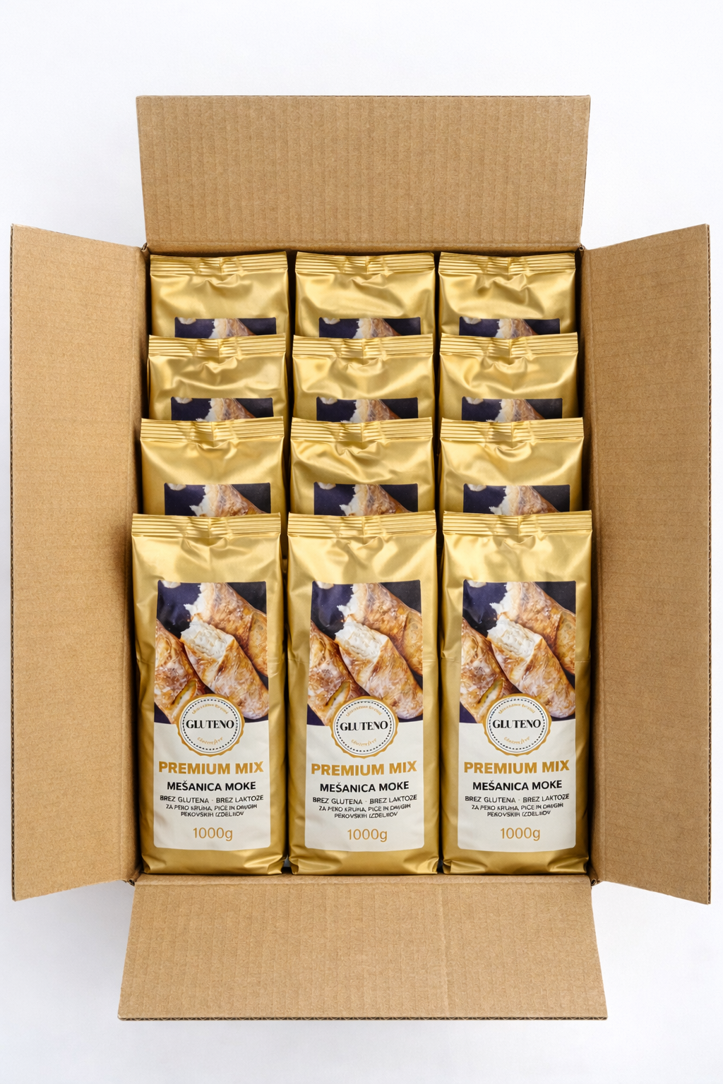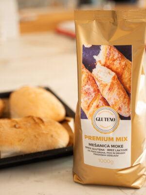 Premium Mix je visokokakovostna brezglutenska moka, izdelana iz posebej prečiščenega pšeničnega škroba, ki zagotavlja izjemno fino teksturo in odlično obnašanje pri peki. Zaradi svoje nežne strukture in nevtralnega okusa omogoča pekovske izdelke, ki so mehki, rahli in prijetno aromatični – kot pri uporabi klasične moke, le brez glutena.