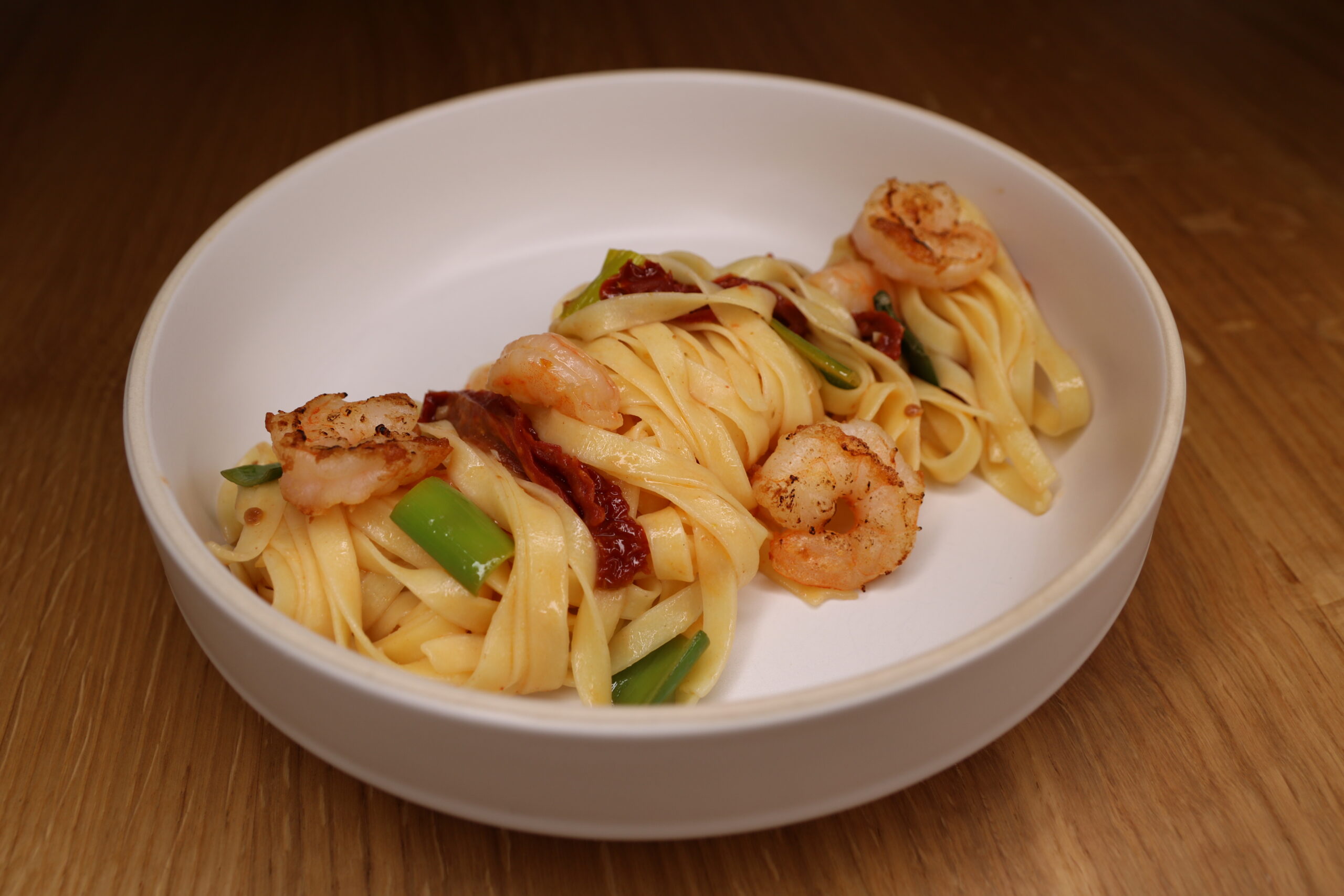 Po kuhanju testenine operite z vročo vodo, nato pa jih pomešajte z omako.